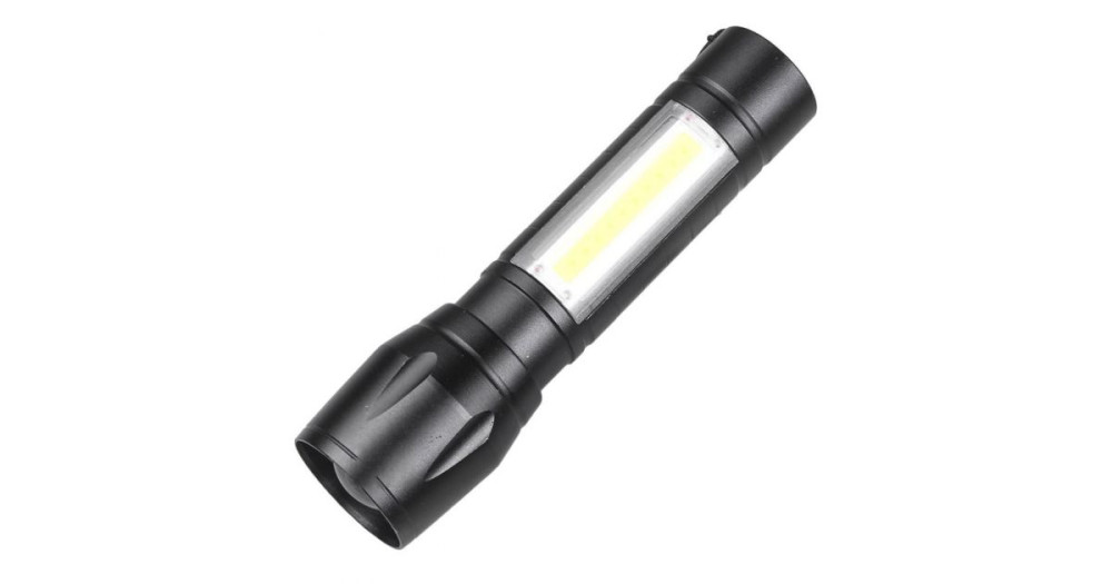- Anyaga: fém - Lenyűgöző fényerő Cree Led T6 + COB Led - 3 üzemmód: 100% fény, villogó mód, Cob led - ZOOM funkció - Beépített akkumulátorral működik - USB-ről tölthető - Karpánttal - Mérete: 9 cm